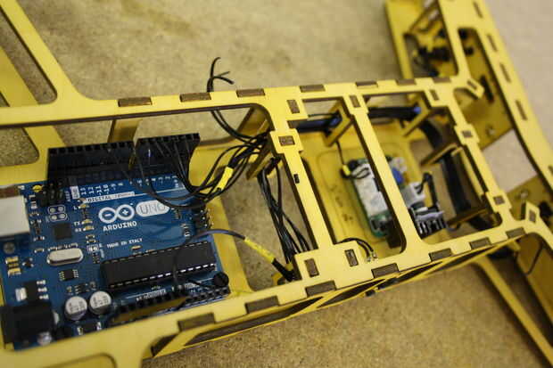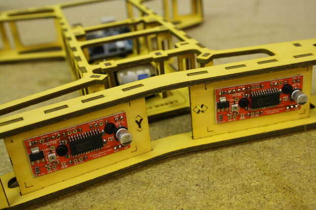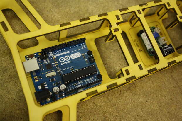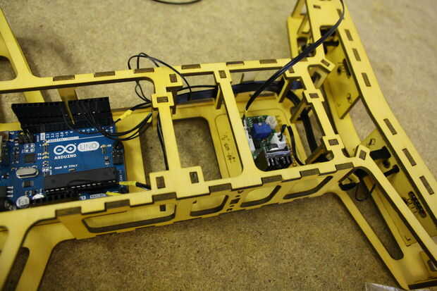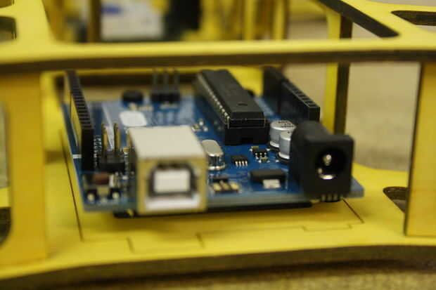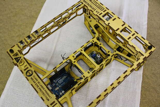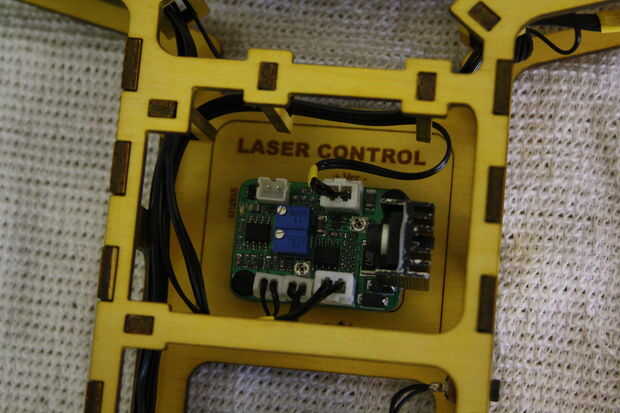 La parte inferior de la Arduino y el módulo de Control de láser PWM ambos han soldado los componentes por-agujero empujando hacia fuera para que los PCB sentarse en espaciadores de nylon. Para esta build he comprado y utilizado unos negros.