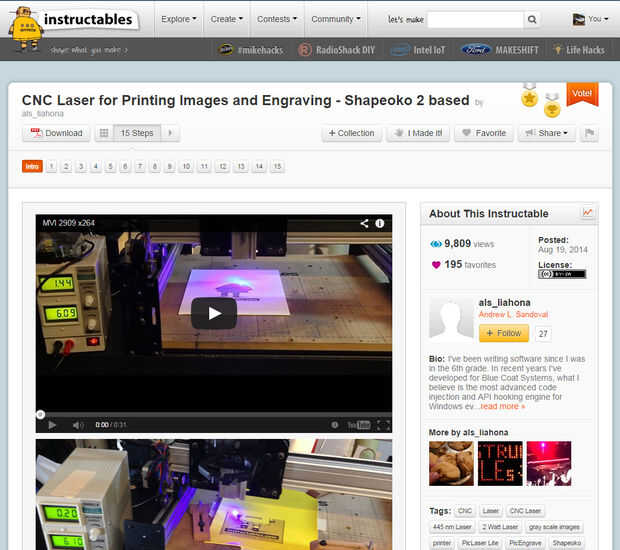 .... Pero yo estaba en una conversación de correo electrónico con las grietas sobre en PicEngrave.com, habían explicado a mí el problema con la función de eje PWM, sabían de alguien que había permitido PWM en el eje z (el eje z es parte de la planificación del movimiento y la velocidad de avance es sin modificaciones) y de la persona en cuestión había escrito un primer instructivo Premio de ganar sobre todo | CNC láser para impresión de imágenes y grabado - 2 Shapeoko base.
