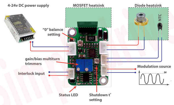 El módulo de Control de láser (LCM) es capaz de administrar todas las longitudes de onda desde UV a IR con una corriente de hasta 1000mw. Antes de que podemos usar el MicroSlice LCM debe setup para el diodo que desea utilizar. El BDR-S06J está diseñado para 400 MW a 600mw a 4.8v.