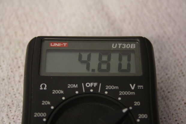11 | Continuar girando el potenciómetro hasta que el multímetro da una lectura de 4.8v (consulte las especificaciones para el diodo).