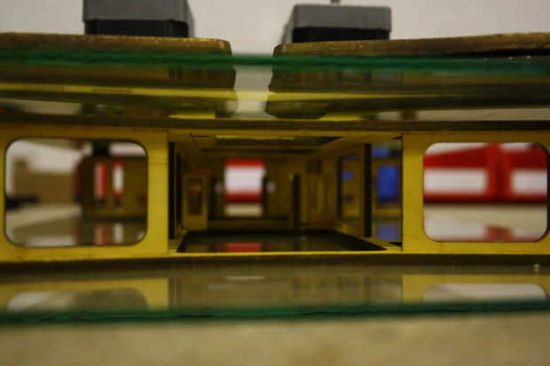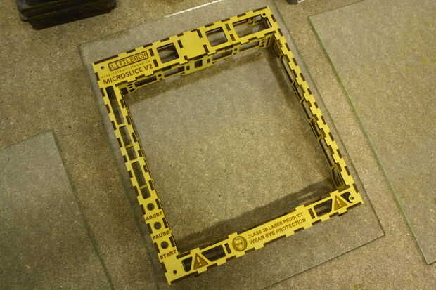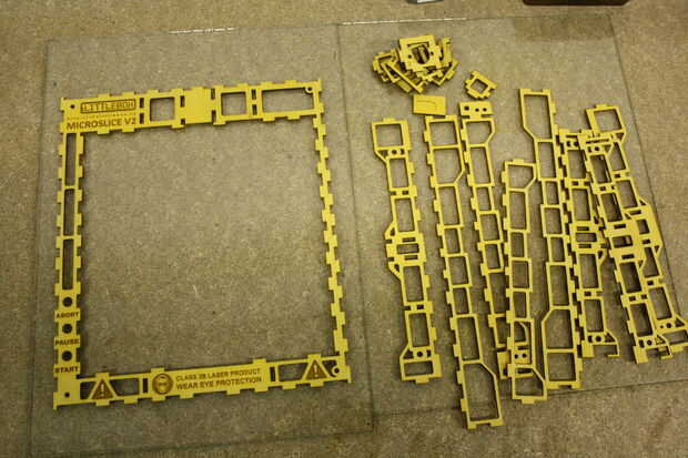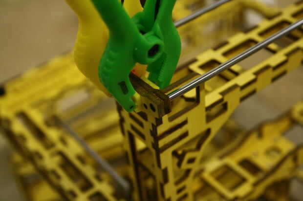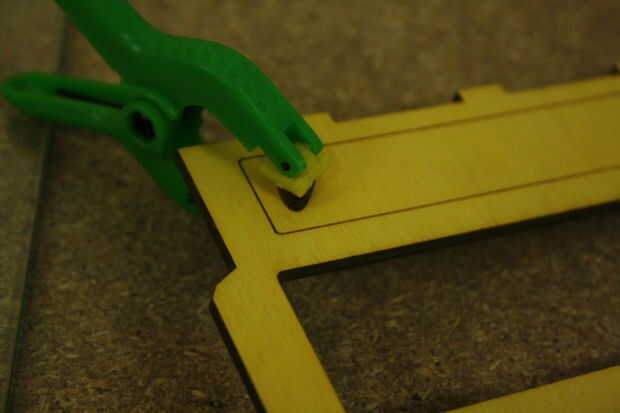 Es importante mantener la Asamblea plana al edificio. Si la deformación de las piezas podrían afectar el movimiento del pórtico cuando llegue el momento de completar la construcción. He sido muy cuidadoso limpiar cualquier exceso de pegamento antes de que tenga la posibilidad de que se seque.