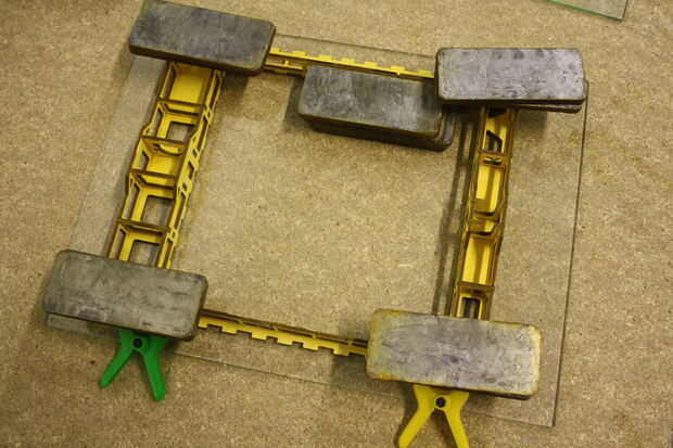 Estoy usando hoja reciclada de vidrio templado de la superficie del edificio. Son muy fuertes, perfectamente plana y la cola no se adhieren a ellos.
