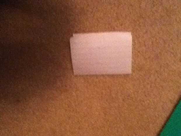 Tomar las tijeras y cortar a lo largo de la línea azul superior. Después de que haya terminado ese papel por la mitad