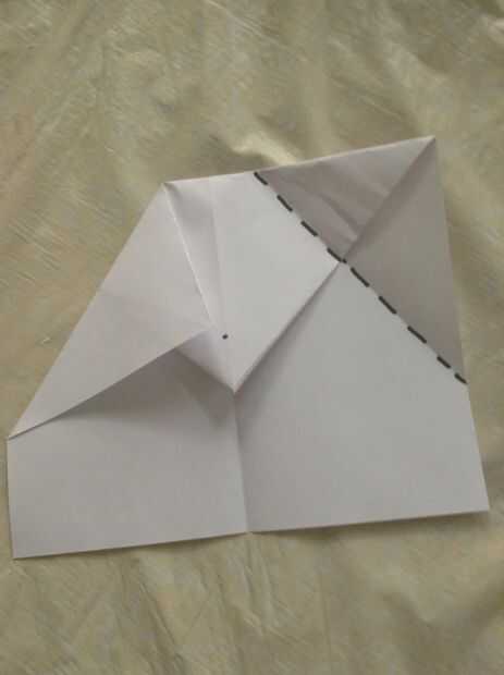 Colocar un punto una pulgada por encima del punto del triángulo dobla solo. Doblar cada esquina en conocer ese punto.