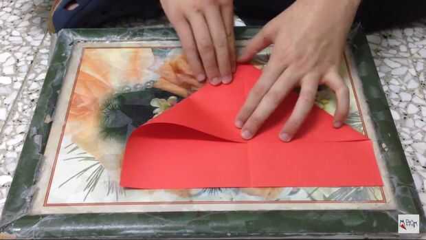 doblar las esquinas del papel en la línea central que hizo en el último paso