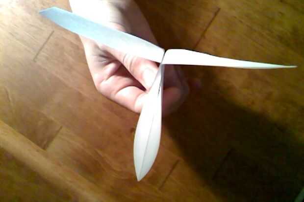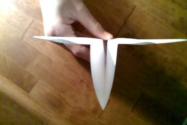 En este paso nos hablará sobre las alas del avión. Antes de ir en pliegue el borde del ala del ala de aviones hacia abajo a lo largo de la parte inferior del fuselaje (Asegúrese de que su limpieza y se ve como imagen 1). Después de que doble hacia abajo la otra ala del mismo modo (no quiero tener alas desiguales!), debe parecerse cuadro 2. Después de que la primavera el ala (por lo que no ángulo hacia abajo) y leer en ver lo que quieres hacer: