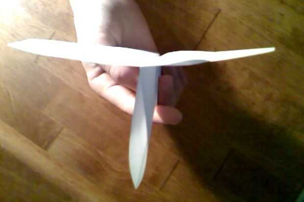 Vela: Esta versión de la vela para este plano es el más fácil de los dos. Requiere las alas del avión que desde su punto de doblez. Esto se llama diedro. Usted escuchará este término mucho si estás en la construcción de aviones RC. Lo que hace el diedro es hace que el avión que sí mismo estabilizar en el aire. Lo hace porque cuando una de las alas es más baja que la otra ejerce presión sobre el menor. Esto empuja el ala hacia arriba y así que uno mismo se estabilice. Consulte la figura 4 para un diagrama en diedro.