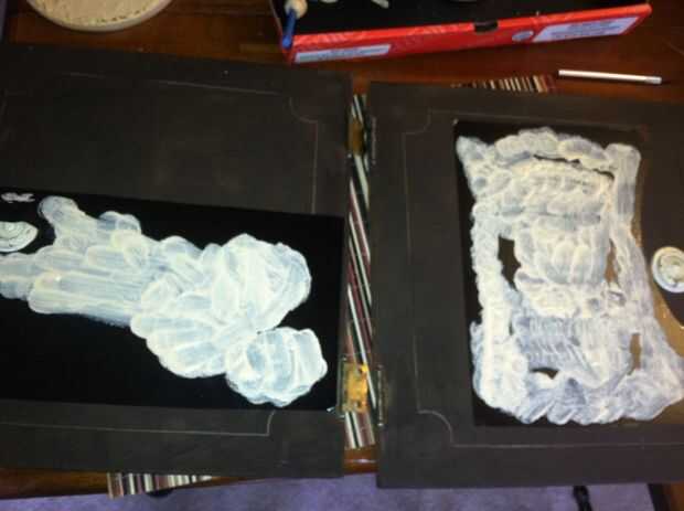 Por lo tanto, necesitaba añadir cierto trabajo de detalle. Encontré 2 hermosas impresiones francesas vintage, por lo que he subido a mi cortador del vinilo "huevón" y les tomó varios días más tarde. Ahora podría comenzar. Le corte opuesta, tenía así que creó una "plantilla de vinilo". Tomé el gabinete puertas fuera y adheared a las puertas del armario. Pinta dos capas de pintura de leche y pelado del vinilo apagado y viola!