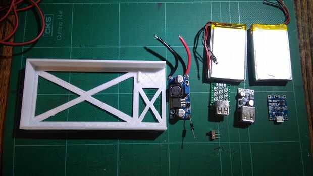 Para los otros componentes, usé un tablero de Control de carga de litio de TP4056, un puerto USB, un interruptor, cubierta impresa 3D q y un convertidor DC DC que usted puede fácilmente recoger uno en línea. También es un conversor integrado ya conectado a un puerto USB, que es un paso adelante transformador de 5V 600mA. En caso usted no puede encontrar algo similar a eso, DIY! Usted puede encontrar muchos tutorial hacer un 3.7v para convertidor de DC a DC 5v.