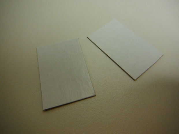 Ahora, corte dos pequeños rectángulos de cartón delgado. Pegue un rectángulo en el interior de la jarra de leche, por debajo de la manija. Tomar el otro rectángulo y pegamento en el lado opuesto del plástico, por lo que hay un lugar sólo lo suficientemente pequeño como para que la manija con bisagras se deslizó a través de. Si necesitas ayuda, mira la tercera foto como referencia. Esencialmente, la parte superior, el mango, debe deslizarse entre las dos piezas de cartón para sostener el mango hacia abajo y evitar tirarse para arriba.