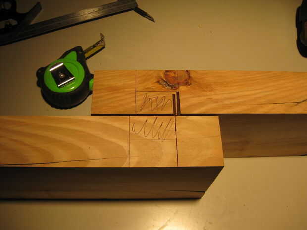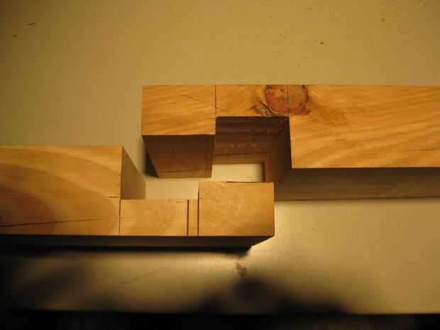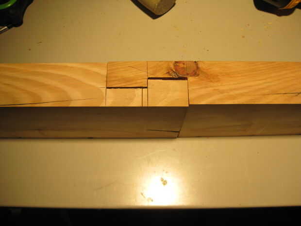 Me limpió en la Sierra de mesa y pensé que un empalme probablemente no sería la mejor idea... especialmente en los elementos. Me decidí por alguna forma de bloqueo de la articulación para ayudar a mantener las piezas de separación a lo largo de las estaciones, así como para agregar interés visual. Si tuviera que utilizar restos de extras, lo menos que podía hacer era hacer en interesante. Si este conjunto tiene un nombre, no lo sé... tal vez un cierre de empalme de regazo o algo.