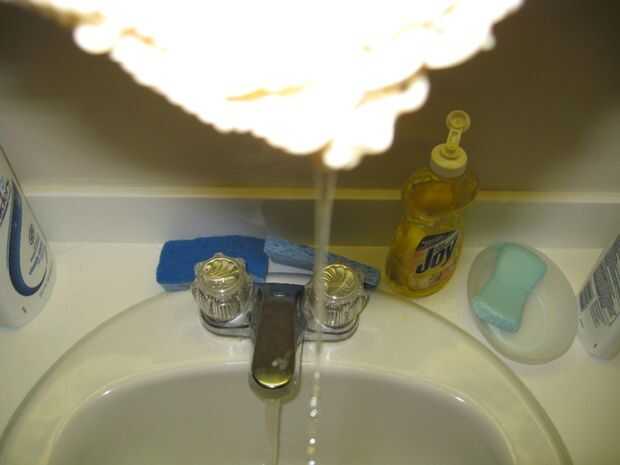 También no queremos mucha agua haciendo nuestros fideos caldoso, así que dejamos el agua extra vertido apagado.