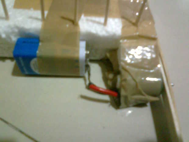 en primer lugar el motor y las baterías Conecte las baterías primero y luego el motor y empalme los cables y no se olvide que no lo común!!!! conjunto terminado como se indica a continuación y luego cinta adhesiva o pegamento lo que decides lo que quieres tomar si usted toma el pegamento que se disuelve en agua. Si usted toma la cinta no se disolverá por lo que es bueno tomar.