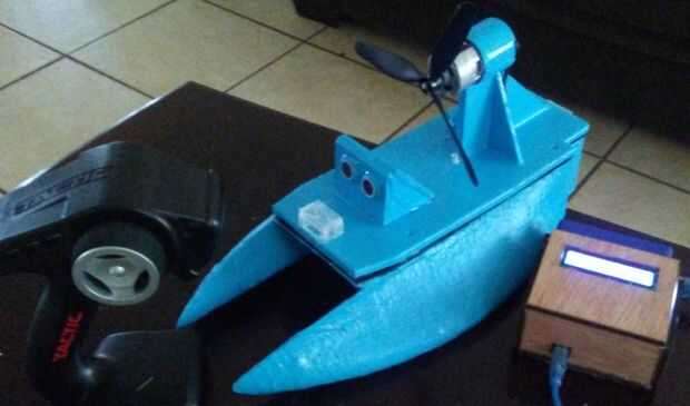 El maravilloso barco de viento fue creado para el proyecto final de Makecourse de 2016 en la Uniersity de Florida del sur. Este barco fue creada usando una impresora 3-d junto con algunas otras técnicas de fabricación para lograr la flotabilidad. El barco también es controlado por control remoto y funciones auxiliar funciones incorporando un arduino: LED cambio de Color, puerto y luces de estribor, así como un Sensor de proximidad y 315 Mhz transmisor / receptor. El barco funciona con un sistema de cepillado 550T que puede reemplazarse con un moter brushless mayor de energía. El caviot sólo sería el aumento de precio para crear y la necesidad de volver a diseñar el montaje de la hélice. (No debería ser demasiado difícil)