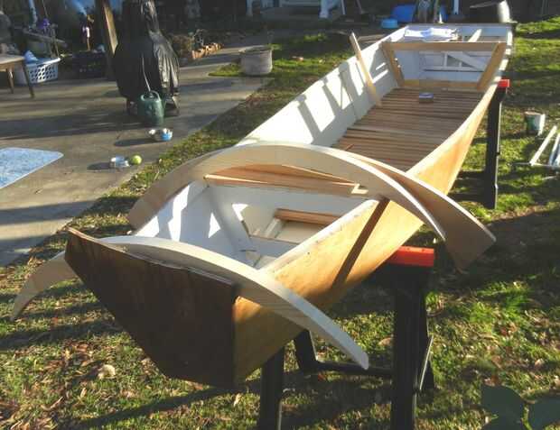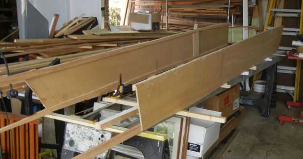 Al final del día, cuando yo había ya medio lleno una camioneta de tamaño completa con piezas, alguien me alertó a los dos lados del bote que había sido lanzado hacia fuera. Son dos (pensé) lados de imagen del espejo de la embarcación de 12'. Yo pensé que agarrarlos, hacer un formulario para permitir que me tortura un poco la forma y hacer un un hombre kayak/sampan tipo barco con una viga de dos pies, en vez de la viga de cuatro pies del bote. Me ha gustado el cochecito-arco utilizado en el sampán, por lo fue parte de la especificación de diseño. Cuando monté mi plantilla edificio descubrí por qué las piezas habían sido arrojadas. El barco tiene un lado izquierdo y derecho. La forma de la madera contrachapada se refuerza por los lomos en la parte superior e inferior. Esta pareja tenía los lomos en la parte derecha, en lugar de uno a la derecha y otro a la izquierda. Esta hecha para que una interesante lección de papiroflexia inversa llegar a un par de lados con dos lomos en la parte interior.