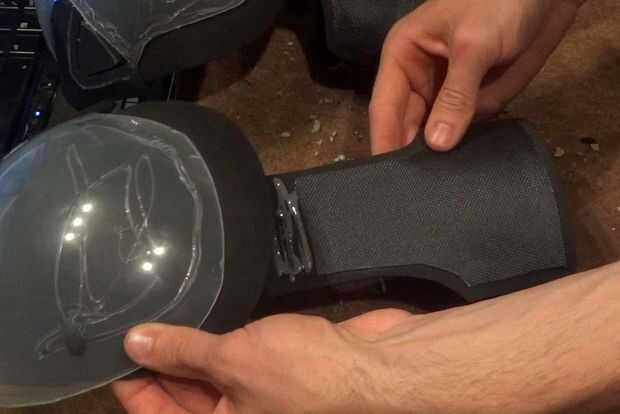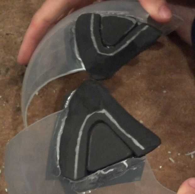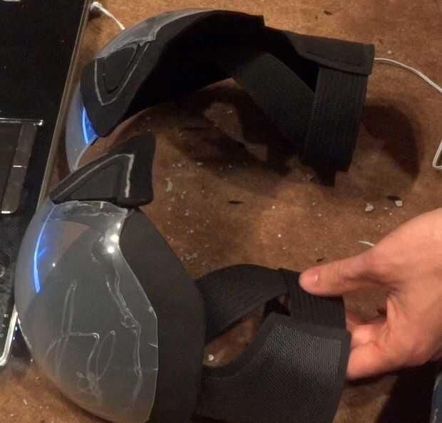 Utilizando unas tijeras de cocina para trabajo pesado, era capaz de cortar en la forma correcta. Añadí otros detalles con hojas de foamie y caliente-pegado en el. Los pedazos de bíceps eran más hojas foamie, con cierta textura de bolso y las correas del bolso pegado. Para las bandas, añadí algunos Velcro para hacerles correa firmemente y también se afloja fácilmente.