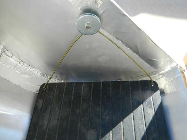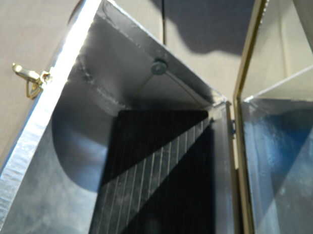La placa de aluminio fundido de gimbled se ata con alambre de colgador de ropa. La superficie de cocción mantiene nivel mientras gira la caja posterior curvada. El pestillo posee la tapa firmemente con la tira de tiempo en forma d entre la puerta y la tapa. Utilicé el tubo de estufa para la cubierta exterior y aluminio para la superficie reflectora interior de la caja.