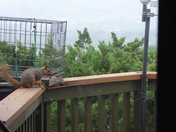 algunos amigos han tenido varios alimentadores de Pinzón destrozados por las ardillas durante el último tiempo. Los dos me enseñaron fueron hechos de plástico claro y madera. Los agujeros para las semillas son muy pequeñas (~ 2mm), pero las ardillas