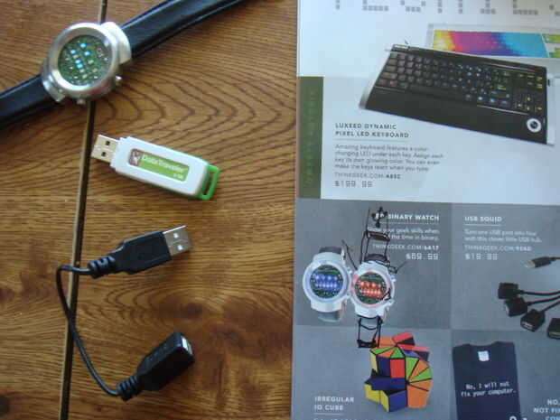 1) un reloj binario (http://www.thinkgeek.com/gadgets/watches/6a17/) después de mucho uso, mina necesita alguna actualización.