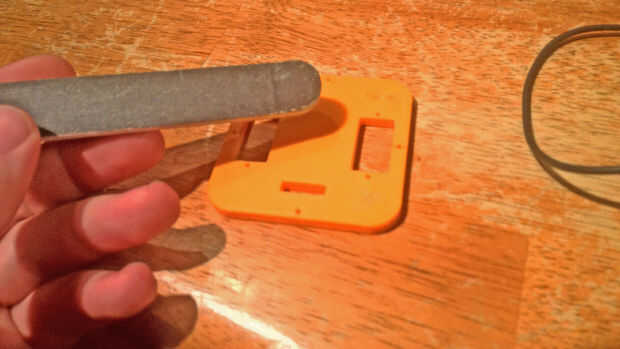 Yo personalmente uso una lima de uñas, curso lado primero, más finos de la arena después. algunas de arena y luego prueba de ajuste y así seguir haciendo hasta que todo encaja bien.