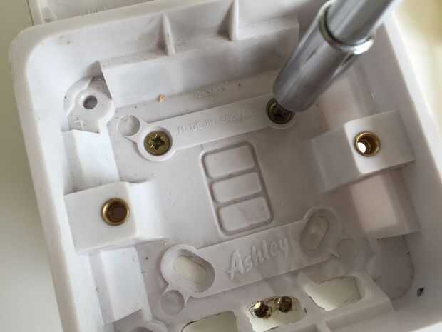 Una caja de plástico interruptores fue sujetada al otro lado de la placa de respaldo.