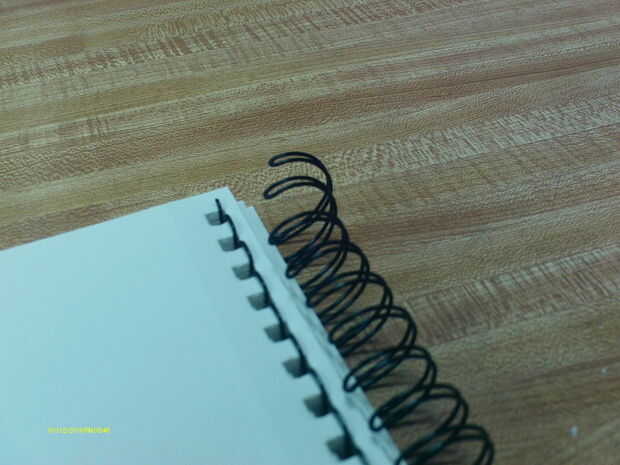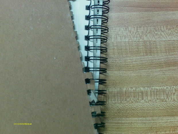 Un montón de bocetos son anillo de alambre atado. Este tipo de enlace es diferente de un atascamiento espiral estándar como el atascamiento de anillo tiene anillos que pueden doblarse para abrirse y liberar las cubiertas (y páginas) sin rasgado hacia fuera. Tapa del libro en su parte posterior. Si nos fijamos en el atascamiento en el interior del libro en la última página, puede ver los huecos en los anillos. Difundir estos lejos de los agujeros en el papel para abrirlos. Una vez abierto, puede quitarse la cubierta posterior. Arrastre que la portada todo y te sale así.