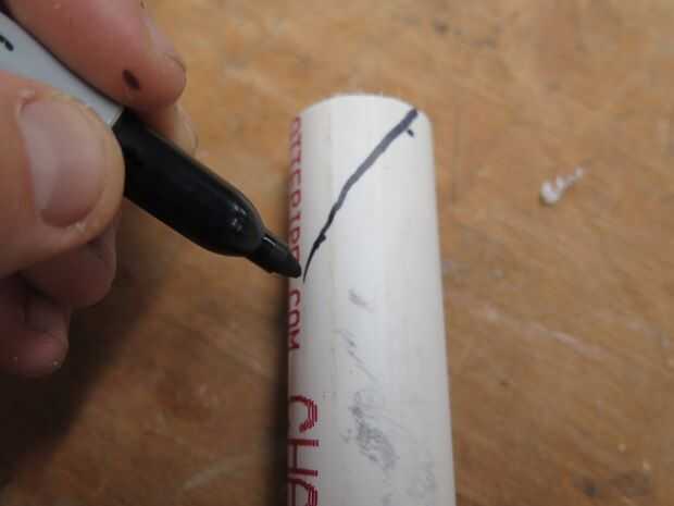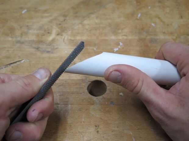 Comience con su pedazo corto de PVC y hacer un corte diagonal, alrededor de 30 grados o menos. En la punta de la misma, usted también quiere hacer la curva un poco más que un pequeño espacio entre la caña y la boquilla.