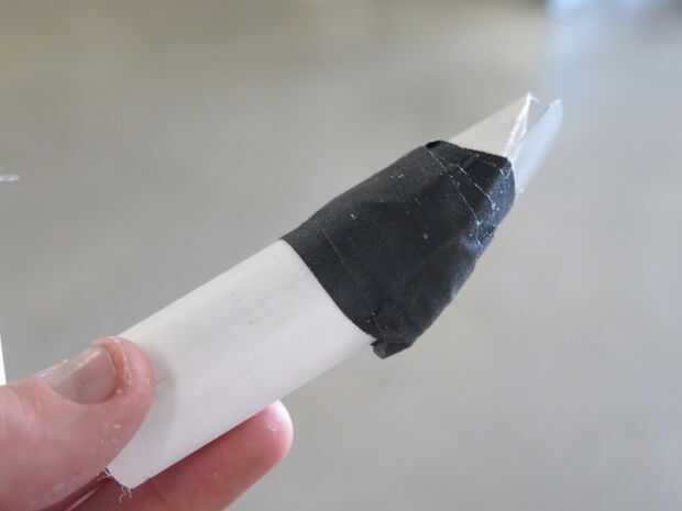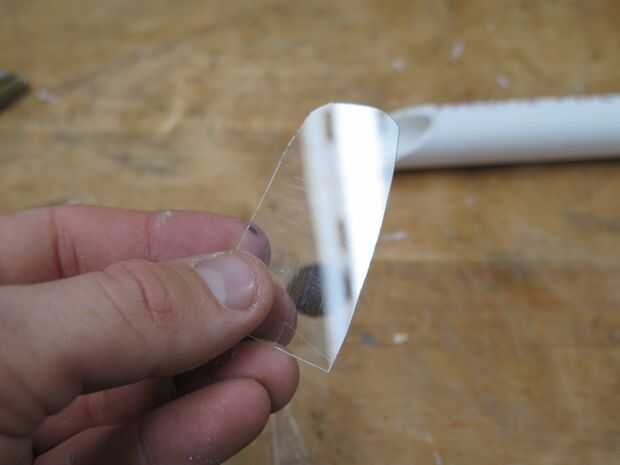 Tomar la pieza de plástico y cortar al tamaño aproximado de la tubería expuesta de su corte diagonal. Use cinta adhesiva para sujetar a su boquilla, comprobación para asegurarse de que es al menos lo suficientemente grande como para cubrir el agujero. Cuando se mantiene hacia los lados, debe ser capaz de ver un pequeño espacio entre la caña y la boquilla. Esta será la posición de abierto y dejar su espacio de reed a la aleta!