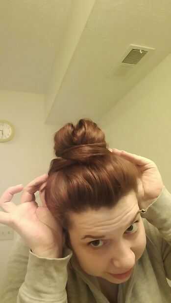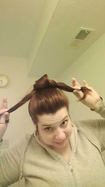 tomar el exceso de pelo desde el 2 º lazo, cruzar delante del bollo de pan y perno hacia abajo.
