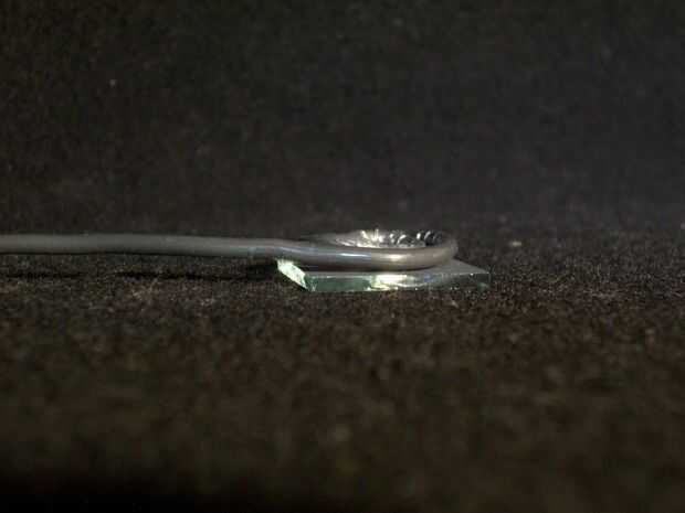 Utilizar los alicates de punta de aguja para doblar un extremo del alambre en espiral. Trate de mantener tan plano como sea posible: porque esta parte consigue pegada en el espejo, debe pone agradable y plana en la parte posterior del espejo.
