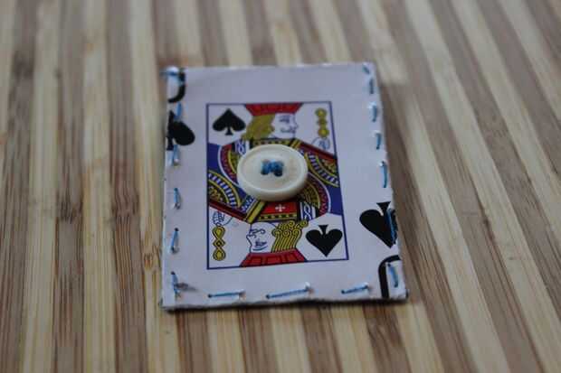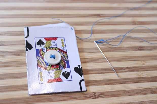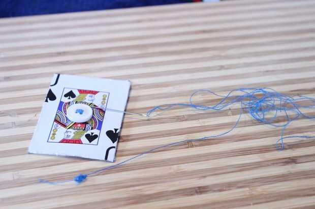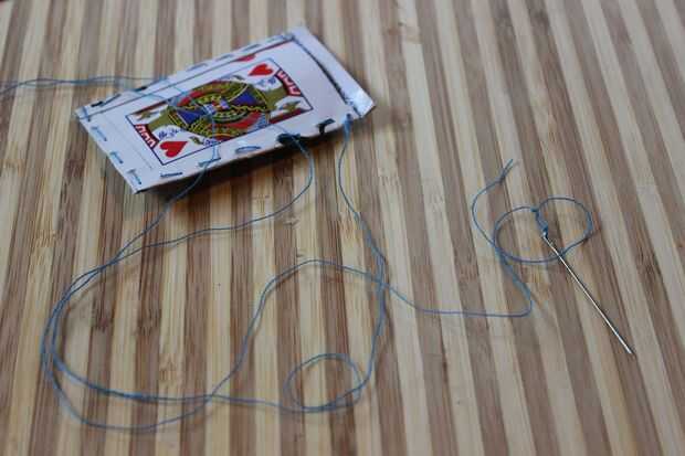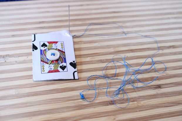 Asegúrese de que el subproceso tiene un extremo anudado para capturar en la tarjeta. Debe hacer unos dos pies. No hay daño en tener extra.