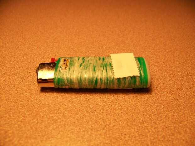 Envuelva el hilo dental alrededor del encendedor y asegúrela con un pedazo de cinta médica.
