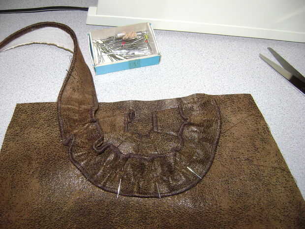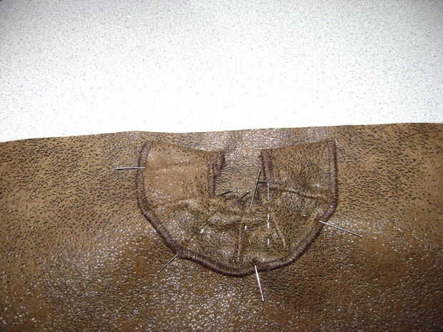 Para el otro lado de la bolsa he decidido hacer un bolsillo. Terminar los bordes de la tela del bolsillo al igual que para las colmenas. Lo hice porque si había doblado bajo la tela habría sido muy espesa y difícil de coser. Mi bolsillo también tiene profundidad. Hice un dardo en las esquinas inferiores y luego coloca el bolsillo por lo que fue cosido más estrecho y ligeramente menos profunda que la tela. La profundidad no es necesaria. Marque este punto pero no coser el bolsillo todavía. Elegí el lugar quería el cierre magnético para ir a la solapa y luego fusionados con un trozo de entretela fusible en el lado equivocado de la aleta del bolsillo para reforzarlo. Realmente hubiera mirado mejor si la aleta tenía cubierta del revés de la tela de forro pero funcionó hacia fuera. He instalado la sección fina del cierre magnético. Asegúrese que la parte fea de metal están en el lado derecho de la tela! Luego cosí la aleta en la posición coser derecho lados juntos con el panel central, pero era muy difíciles y después lamentó. A continuación coloqué el bolsillo donde debe ir y con la aleta doblada hacia abajo como lo haría si se terminó, he marcado donde debe colocarse el cierre magnético en el cuerpo de bolsillo. Otra vez añadí entretela fusible en la parte posterior de la cavidad. y la parte gruesa de la clausura. Esta vez las piezas de metal feas están en el lado equivocado de la tela. Cubrí con entretela fusible más. Si usted no se deben cubre los bordes de metal sobresalen y pueden rasguñar (no quería que mi celular táctil arruinado). La bolsa fue reposicionada y cosida en su lugar. En el exterior de la aleta del encierro del metal es muy feo. He cubierto un botón extra grande con el cuero de la tela y había pegado a la parte superior del cierre.