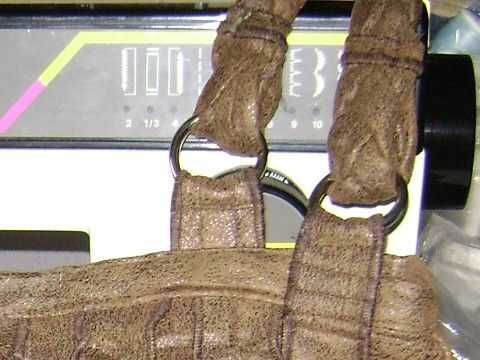 Entonces parecía tonto al dejar al lado las costuras visibles. Así que añadí más tiras. Para el lado rizado del monedero no volante las tiras he añadido para cubrir las costuras. Pensé que sería excesivo. En su lugar me dejaron recta pero D anillos ha añadido. Los anillos que usé eran hardware de caballo resistente... jajaja (que solía tener caballos y éstos quedaron de mi "bolso de la reparación") las tiras planas fueron puestas en la costura de la bolsa en el centro y debajo de la tira. Los anillos en D se cosen entre la faja y la bolsa en el punto medio de la altura del bolso. Tuve que dejar 1/2" juego donde fueron cosidos por el espesor de los anillos y el grosor de las tiras. Así que cuando usted está colocando los anillos en D hacen una línea cosida por debajo y por encima de la ubicación de los anillos en D. Coser el resto de las tiras en su lugar. Hay una línea de puntadas en ambos lados a lo largo del borde de la tira para mantenerlo hacia abajo. No cosa más allá de la costura de la cara! He dejado material de tira extra en la parte superior de la bolsa para colocar los anillos del mango (la parte explicado más adelante). Esto debe haber hecho a las tiras con volantes agregué en el lado del bolsillo así!... pero aquí otro tornillo que después pensé por lo que había a cosida la tela extra en después.. .sigh: S. entonces hizo un tramposo de la tira. Parece que la franja pertenece a la parte inferior de la mitad de la tira... pero no por lo tanto, por qué llamarlo un tramposo. Cosieron 2 tiras y un borde puntiagudo que se cose con los bordes acabados dio vuelta bajo. Aquí otra vez lamenté esto de costura tan espesos. Debo haber acabo de terminar el borde de la tira con la puntilla serged como los otros bordes... a veces simplemente no creo que por delante. Esta tira de tramposo cosí en la parte superior la tira plana que cubre la costura que se cose justo debajo de los anillos en D y el punto enfrenta a la parte superior de la bolsa. Una vez que se cose, pasar la tira a través de dos anillos en d vuelta en sí mismo para que apunte hacia abajo y pasar por el anillo superior solo que esta vez. Debe ponen plano sobre uno otro como en las fotos, estas fotos fueron tomadas después de que la bolsa estaba completa así que por favor no se confunda.. .we no faltó un paso.