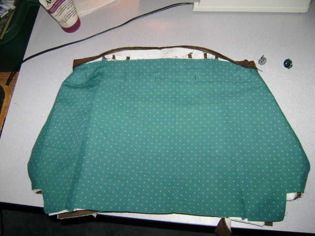Ahora podemos terminar el revestimiento. Fijar el revestimiento en su lugar asegurándose de que el borde del forro y costura de la guarnición de cuerpo son totalmente cerrados (puedes Hilvanar este en el lugar también) entonces, en la parte exterior de la bolsa, parte superior coserlo en lugar. Acercarse muy lentamente los cierres magnéticos. Asegúrese de que el pie de presión puede ir y aún coser la vista en este punto. Si el pie es ancho, cambia pie a cualquiera una puntada recta estrecha pie o pata. Puede volver a su pie universal una vez pasado el cierre.