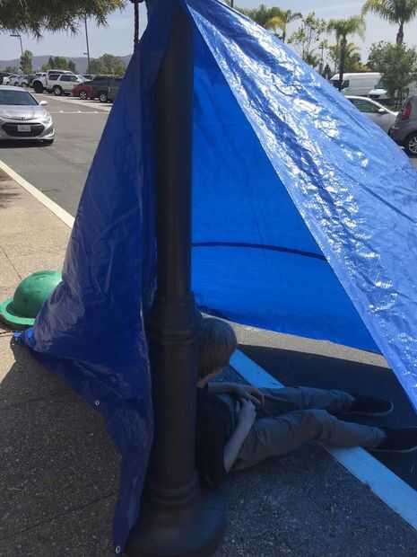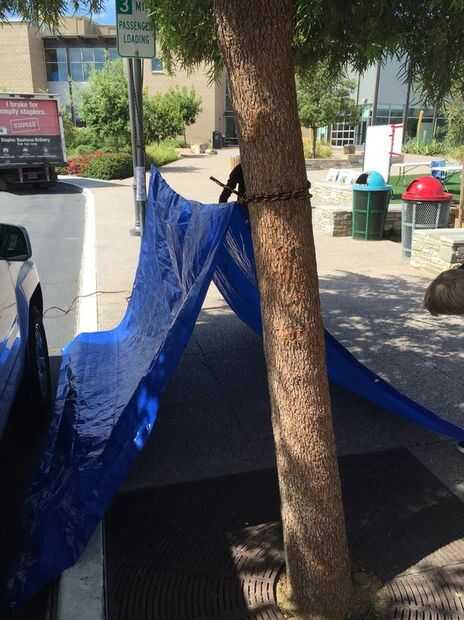 Encontrar un ambiente adecuado para establecer su refugio, preferiblemente un área con dos árboles que están un poco juntas. Atar la cuerda a un árbol y lo extienden a la otra. Asegúrese de que el nudo es seguro y no tiene ninguna holgura excesiva. Desenrolle la lona y lo cuelgue de la cuerda, segura con rocas o estacas para evitar que el abrigo que se derrumban.