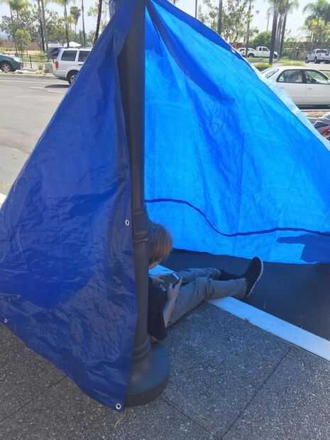 Otra manera de construir su tienda de campaña es crear una especie de cobertizo. Envuelva la parte superior de la lona alrededor de un árbol y asegúrelo con la cuerda. Poner piedras o estacas alrededor de la parte inferior para asegurarse de que no sopla el viento de la lona. Como se trata de una manera diferente de establecer su vivienda, es aconsejable que construir una sencilla tienda de campaña.