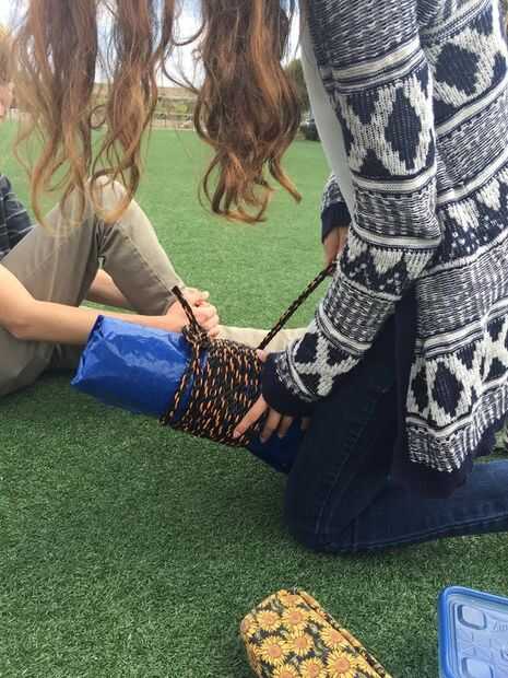 Empezar por doblar la lona y envuelva la cuerda alrededor de ella para el embalaje conveniente. Coloque la lona y cuerda en bolso del corazón. Asegúrese de que está seguro y no moverse mientras viaja. Coloque al kid de primeros auxilios bien al lado de la lona y estás en tu camino.