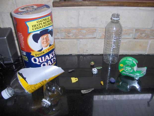 -Un botella de agua transparente (los más viejos cilíndricos funcionan mejor que el nuevo «eco» que.)