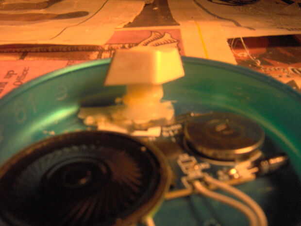 Coger los aperos de plástico pequeño y colocarlo entre el interruptor de metal y el metal de la placa en el tablero. Tienes que ponerlo suficientemente lejos que no es música, pero usted puede oprimir el interruptor de metal y comenzar la música. Cuando usted tiene que levantar el dedo, el sonido debe dejar así.