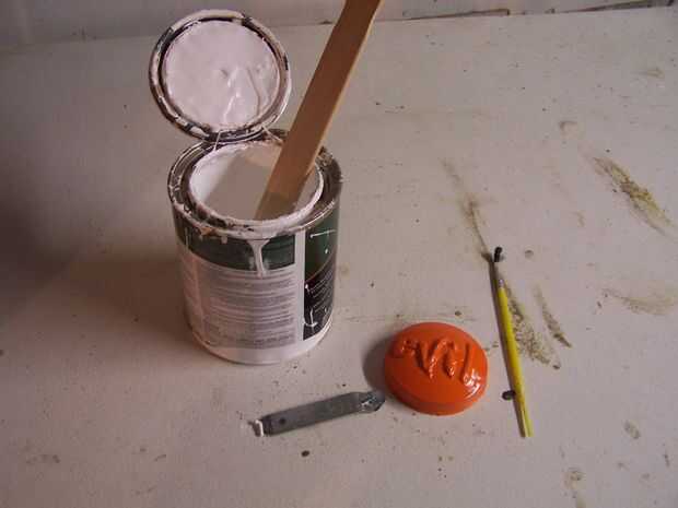 Después de que la pintura blanca muere, colóquese una capa naranja. El recubrimiento blanco también ayuda a acentuar donde has pintado y lo que necesita pintura.