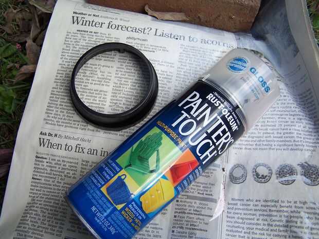 Esperando se seque, agarra tu pintura en aerosol negra y el anillo de plata con la primera capa de la capa. Una vez que se seca, rocíe una segunda capa de color negro. Agarra tu brillo claro y terminar el negro con una capa clara, después de seca la segunda capa de negro, por supuesto.