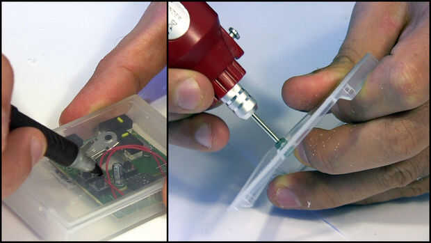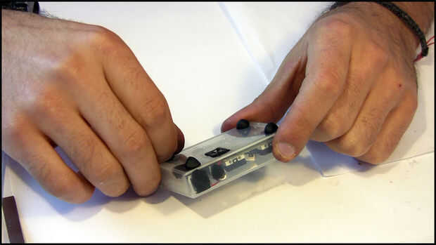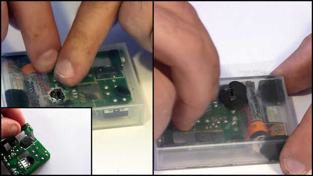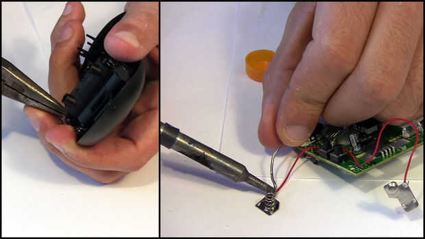 Utilizando Sugru, une conectores de batería para el caso. Era un ajuste perfecto.