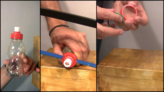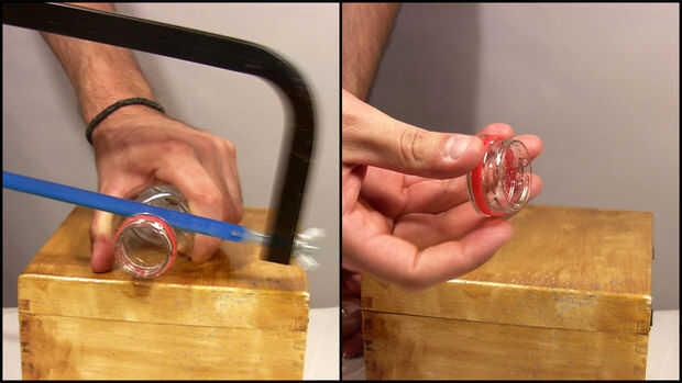 Corté la parte superior de la Copa de la botella, dejando un anillo con hilo.