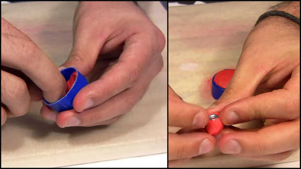 Utilizando Sugru, hice un botón para caber dentro de la más pequeña pieza de cuernos.