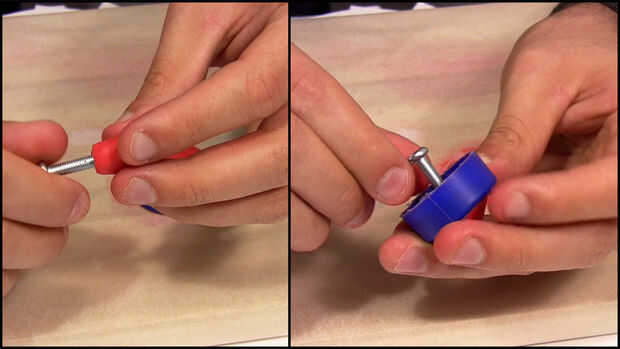 Entonces, unido a una tuerca al botón y atornillar un tornillo para poder ajustar más adelante.