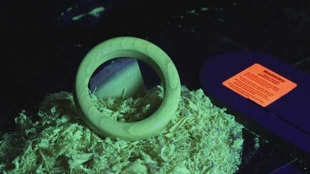 Acacia naturalmente fluoresce bajo luz negra! Hay sin trucos de cámara utilizadas, o cualquier tratamiento especial a la madera sí mismo. Es sólo la propiedad de esta madera.