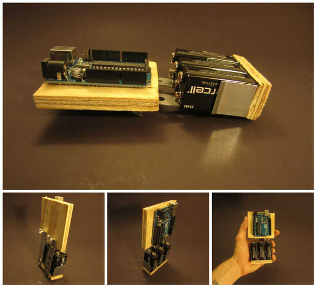 Primero comience poniendo los titulares de la batería en un pequeño trozo de madera cortado a la medida.
