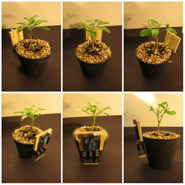 hacer marcas con un lápiz donde se sentará el arduino. Usted verá que tiene 4 agujeros en el tablero. poner clavos a través de estos orificios con un ángulo de 45 grados para que cuando se pone en su arduino simplemente se deslizará en allí. Asegúrese de que sus uñas tienen cabezas más pequeñas luego los agujeros. Este fue le puede quitar el arduino en cualquier momento todo lo demás dejando sin tocar en el brazo de la planta.