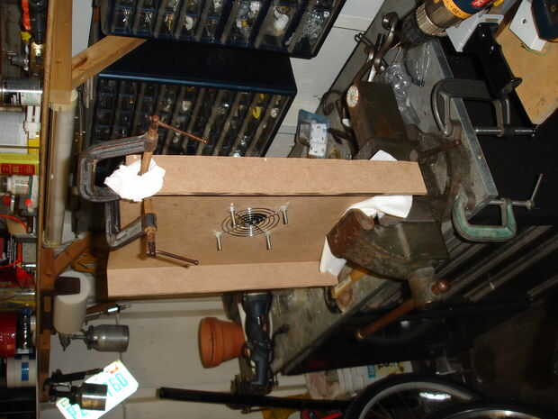 tan simple como suena esta parte fue realmente un poco difícil... utilicé algunas piezas dobladas del metal de hoja y algunas abrazaderas para hacerlo yo misma... pero es posible que pueda hacerlo con un par de ayudar a las manos... buena suerte. Usar las imágenes para el referance... también debido a la delgadez de la madera en que tienes que usar un taladro para hacer los agujeros ligeramente más pequeño que va clavando... y asegúrese de que las uñas estén lo suficientemente cortas como para que no agriete la madera... esto es difícil porque la madera es fina así que tómate tu tiempo... (probablemente necesita acortar las uñas por los recorte... lo hice como medida de precaución.)